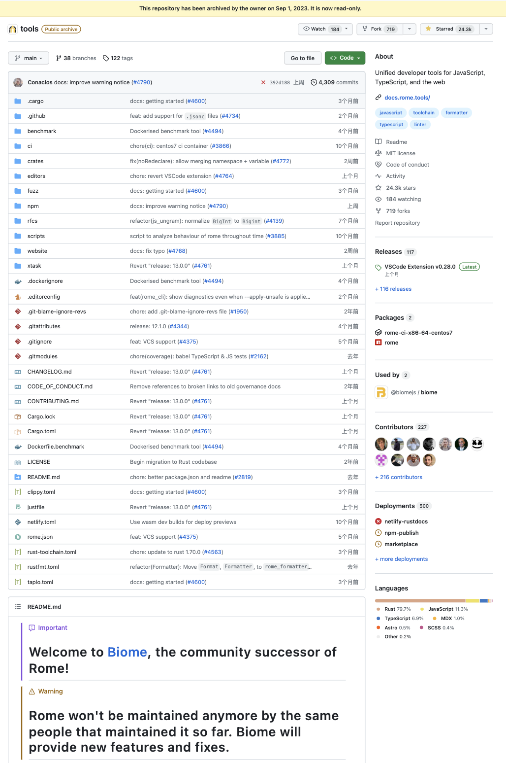此后,Rome 将由 Biome 进行维护和新功能开发。