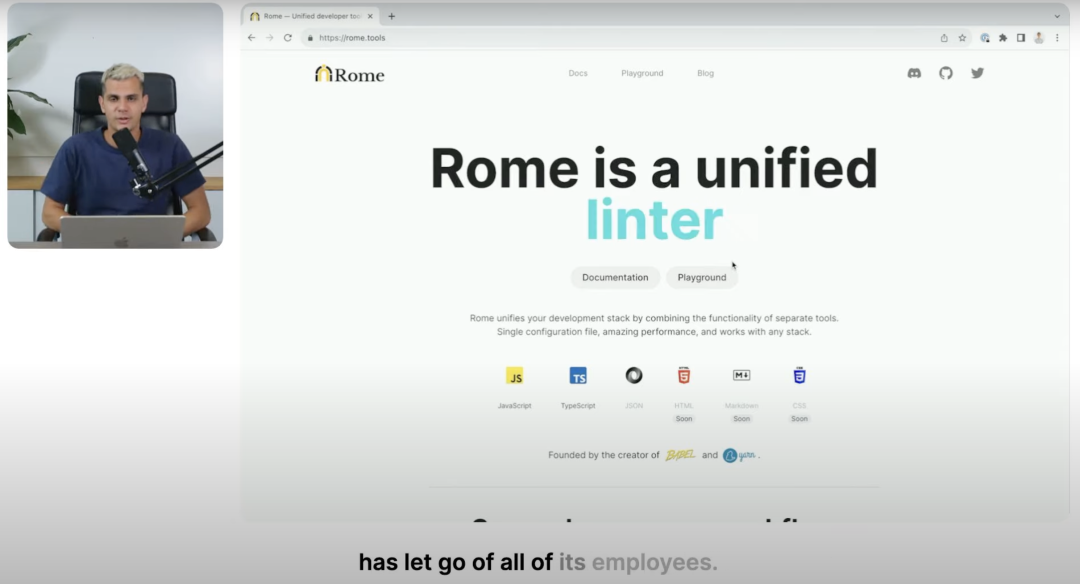 2020 年 8 月 9 日,Babel 和 Yarn 的作者 Sebastian McKenzie 向全世界介绍了 Rome,称其为 Babel(他的第一个作品)的“精神继承者”。第一个测试版是针对 Rome 的 JS/TS linter,但 Sebastian 宣称 Rome 最终将成为一个整体工具链,“取代 Babel、ESLint、webpack、Prettier、Jest 等”。