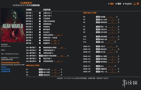 >>>《心灵杀手2》v1.1.1三十九项修改器风灵月影版