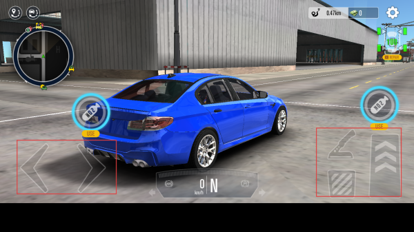 3、进入驾驶界面后,通过左下角的方向键控制车辆转向,利用右下角的功能键进行加速、刹车操作。