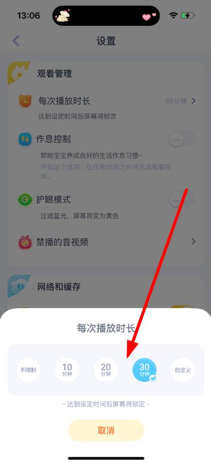 3、时间锁帮助宝宝按时休息,保护宝宝视力。