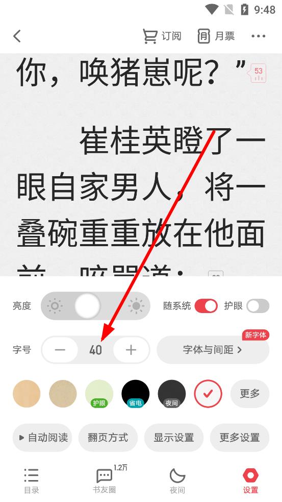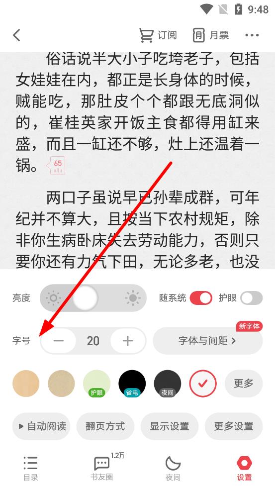 3、点击+按钮,字号数值会增大,字体也就随之变大,调整到合适的字号后,即可按调整后的字体大小进行阅读。