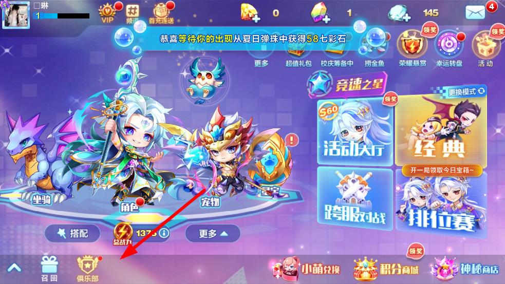 1、进入天天酷跑游戏主界面后,点击底部导航栏中的俱乐部按钮,进入俱乐部相关界面。