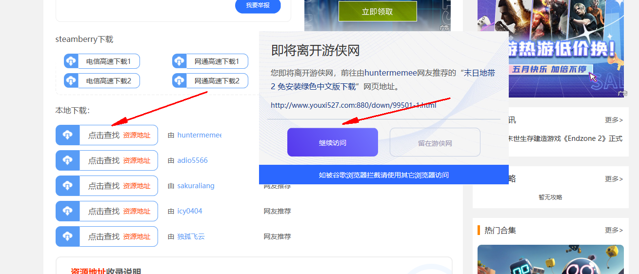 1、点击页面顶部的下载按钮进行游戏下载,跳转到底部。