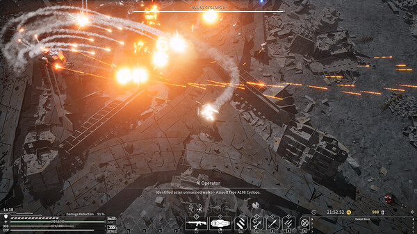 采用经典俯视角操控模式,结合机甲高机动特性,玩家可通过冲刺、喷射位移等操作在密集弹幕中穿梭,配合爆炸特效与物理反馈实现“割草式”战斗爽感。