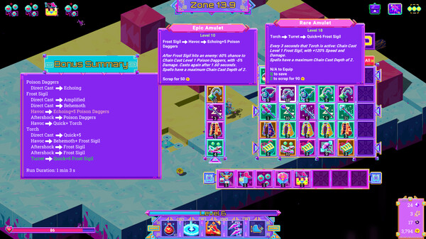《霓虹法术风暴》中你将会在这些魔法地块上前行,挥舞着无限的魔法,沿着破碎的霓虹灯道路奔跑,在这里你可以释放释放毁灭性的咒语,叠加狂野的协同作用,打造一个非常狂野的地形。