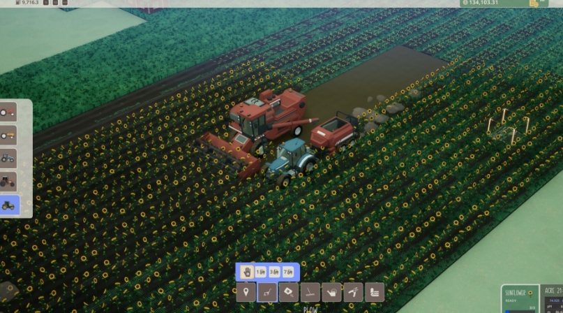 工具会自动选择可用的最大农具来优化操作。例如,如果你拥有一台 3 行犁,之后又购买了一台 5 行犁,系统将优先使用 5 行犁进行田地操作。