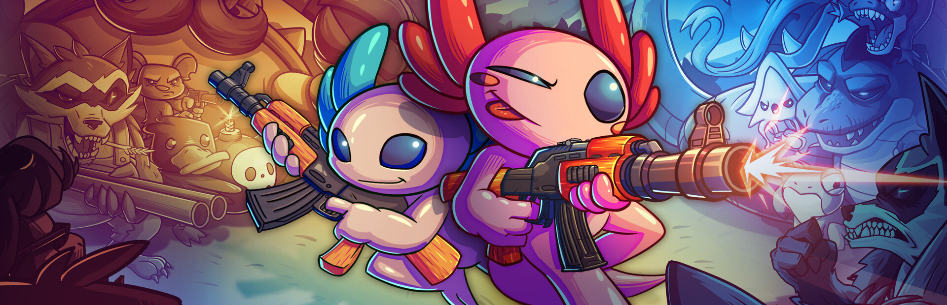 AK蝾螈(AK-xolotl)是一款多彩像素图形俯视视角动作射击游戏,可爱的蝾螈宝宝端起AK,在随机动物地下城大开杀戒。使用趁手的武器,搭配强力道具,消灭沿途敌人,拯救蝾螈宝宝,组建一支蝾螈军团。