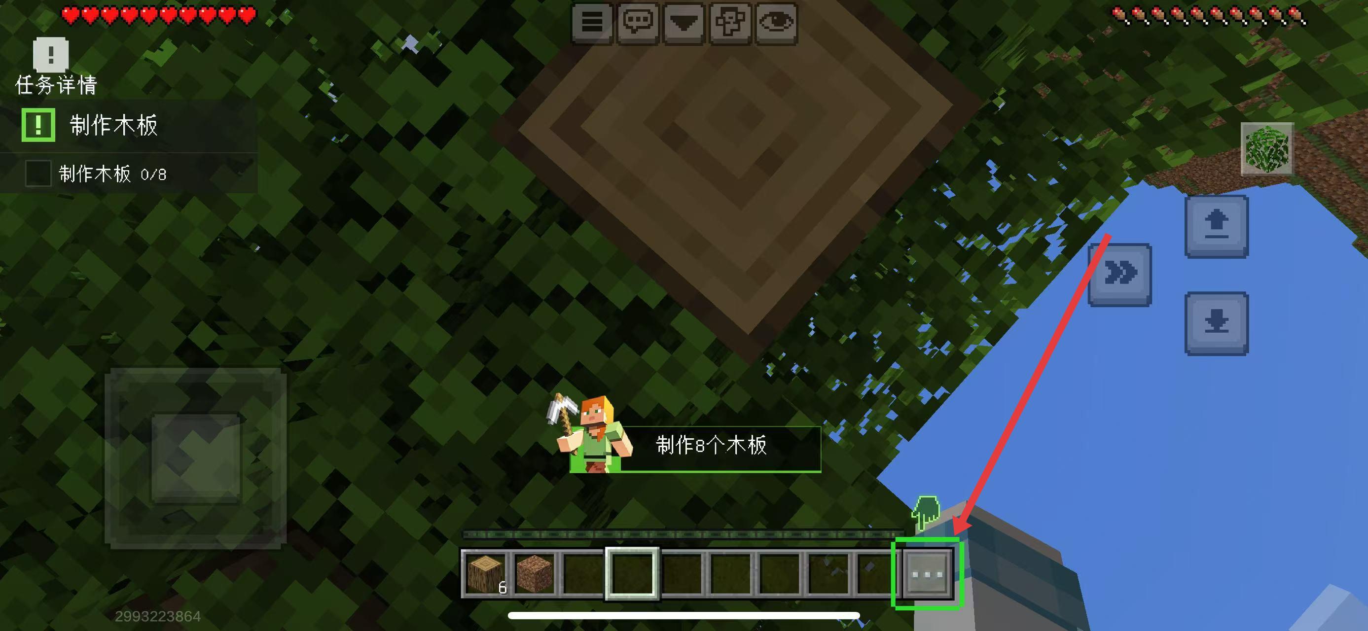 1、任务为制作木板,点击下方带三个点的按钮,打开合成界面,准备制作木板。