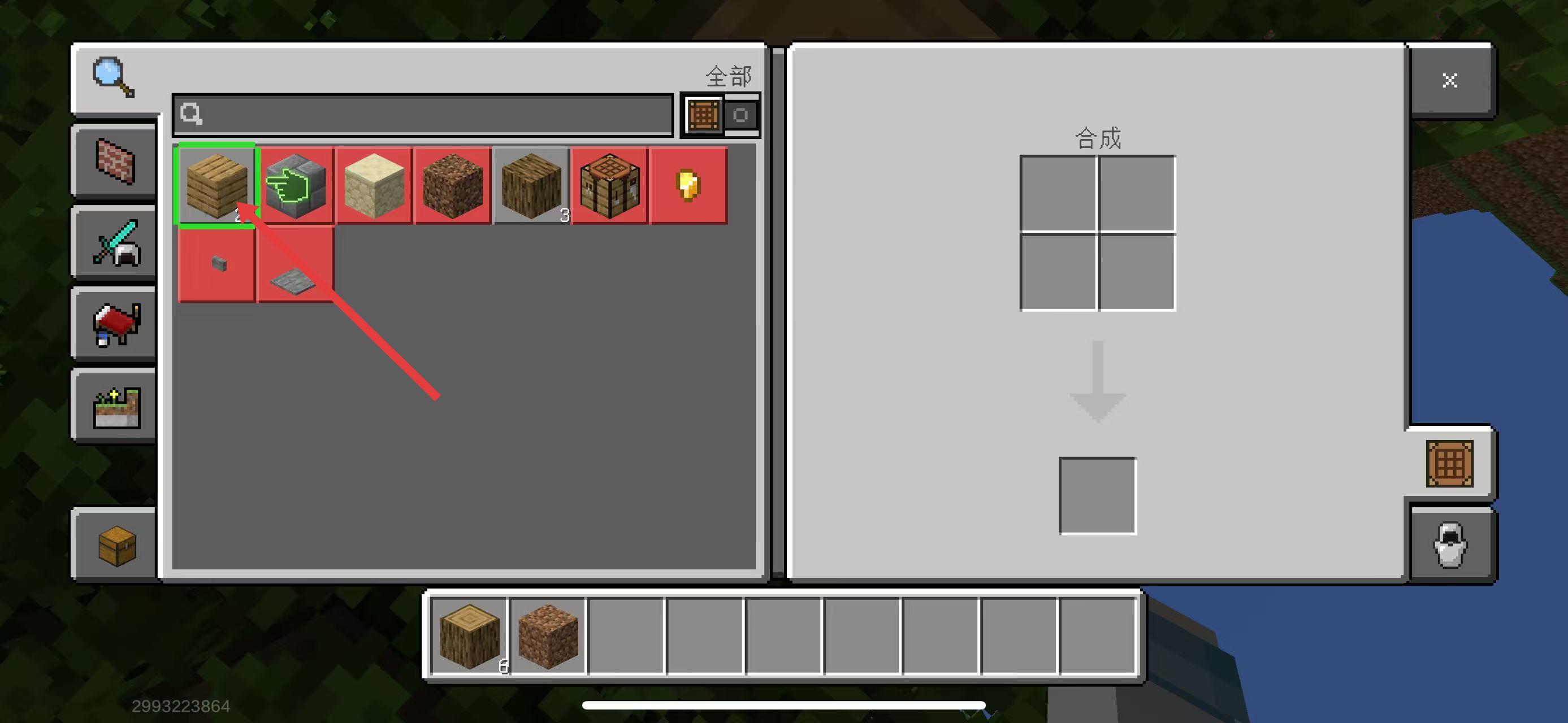 2、在合成界面,选中左侧原木,将其放入右侧合成网格,进行木板合成操作。