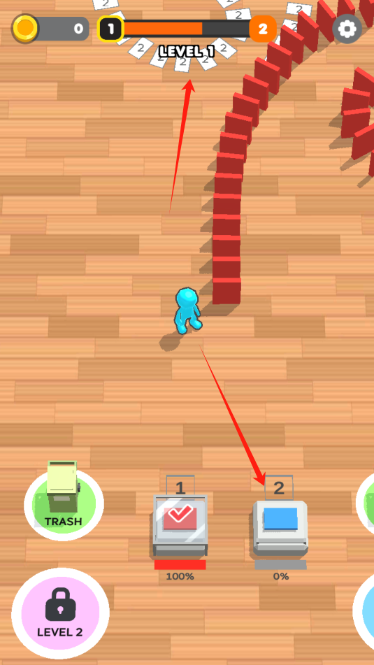 1、游戏中,根据地板上排列的数字,移动小蓝人到数字2这里背上牌子。