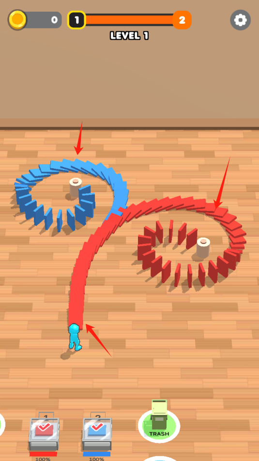 2、3D视角呈现玩法,触发起点后,骨牌依次倒下,展现连贯连锁效果。
