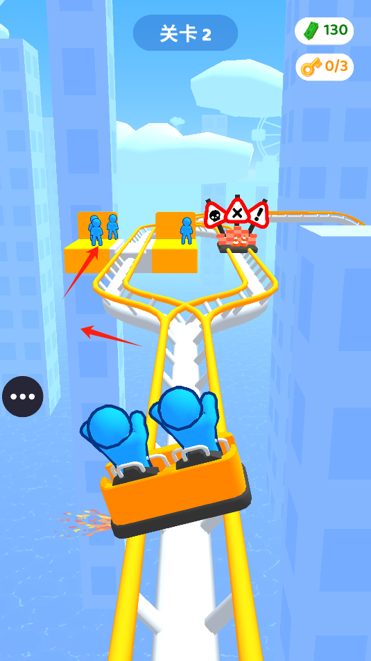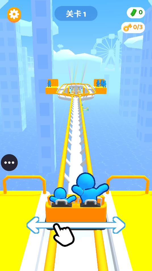 2、游戏中以左右滑动屏幕来控制过山车的方向,需提前预判,安全的方向,避开危险道路。