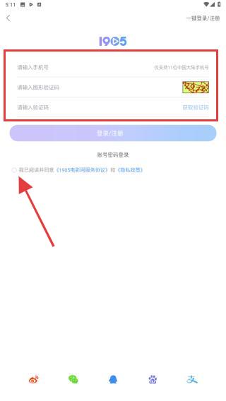 3、在输入框填写手机号码,识别并输入页面显示的字符,点击输入手机收到的短信验证码,勾选后点击登录即可。