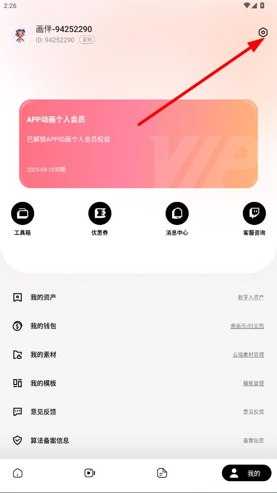 2、在个人页面中,点击头像右侧的设置图标,进入设置界面。
