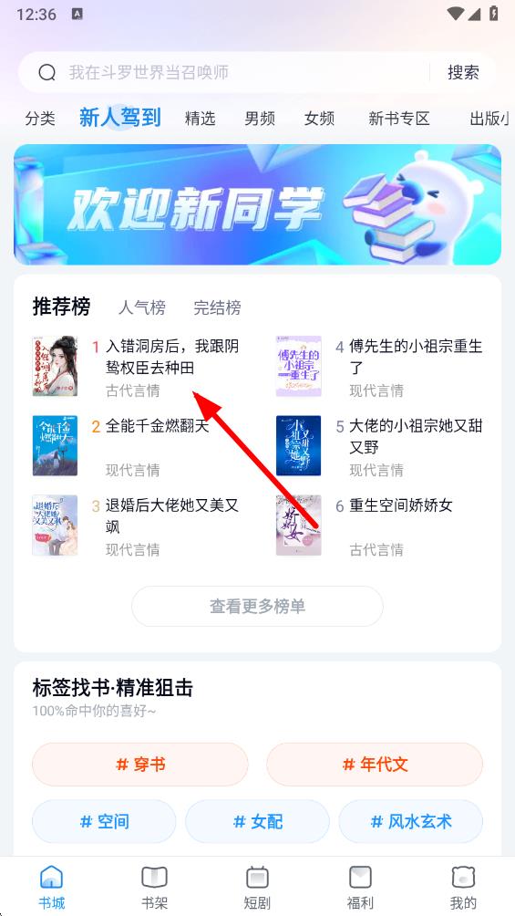 1、打开米读app,在书城中选择一本想要阅读的小说,点击进入阅读界面。