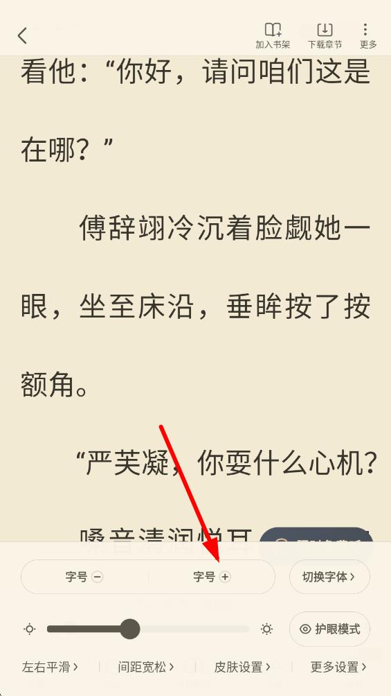 3、在弹出的设置窗口中,找到【字号+】按钮,点击可增大字体。