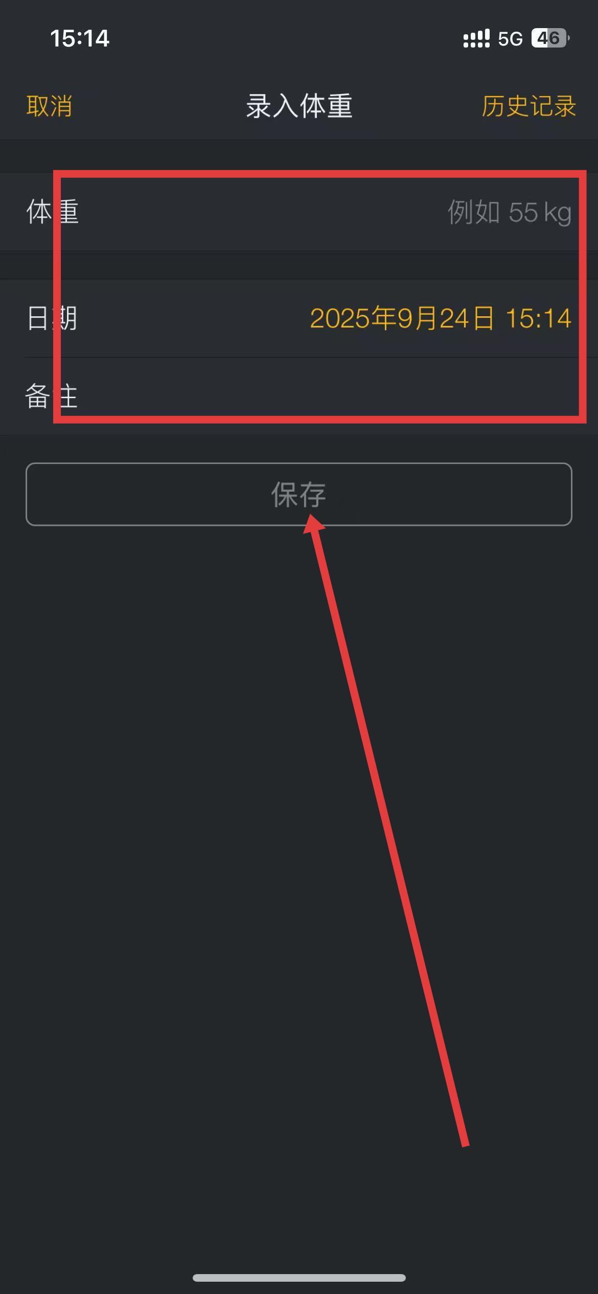 4、填写信息后点击保存按钮,即可完成体重录入。