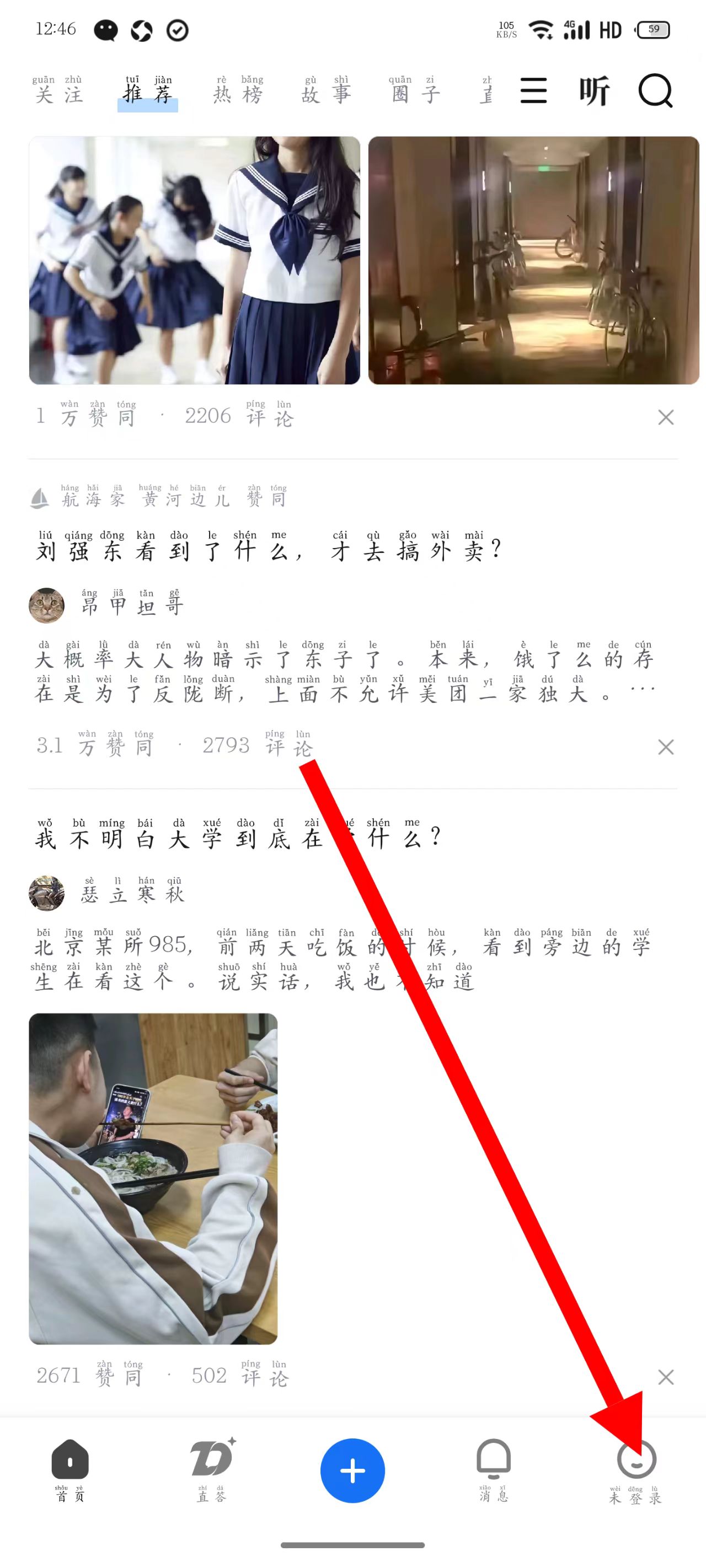 1、打开APP,点击右下角未登录。