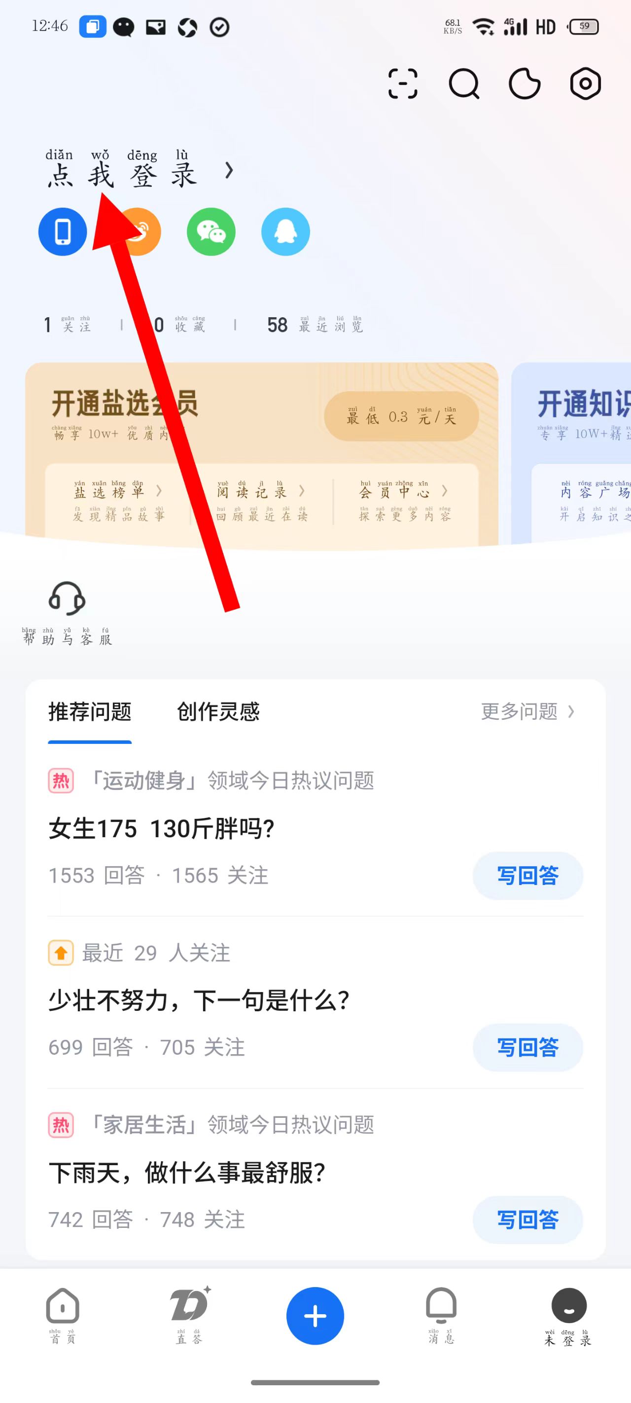 2、在登录页面,点击点我登录。