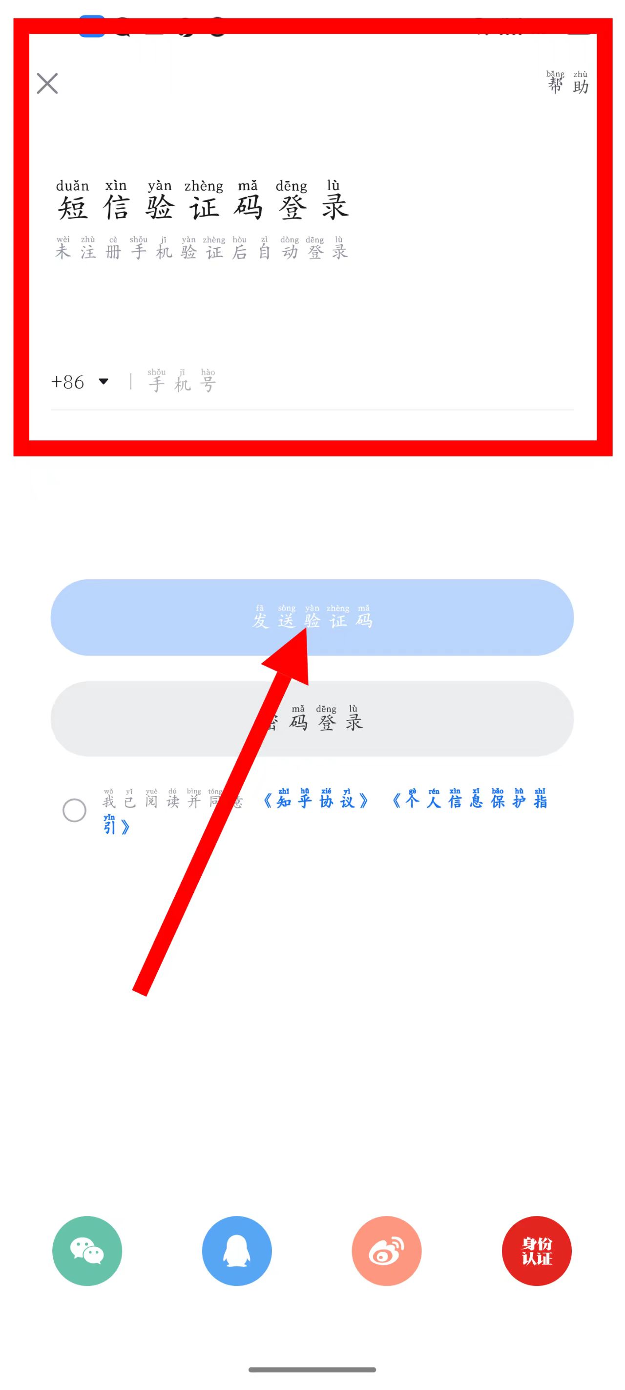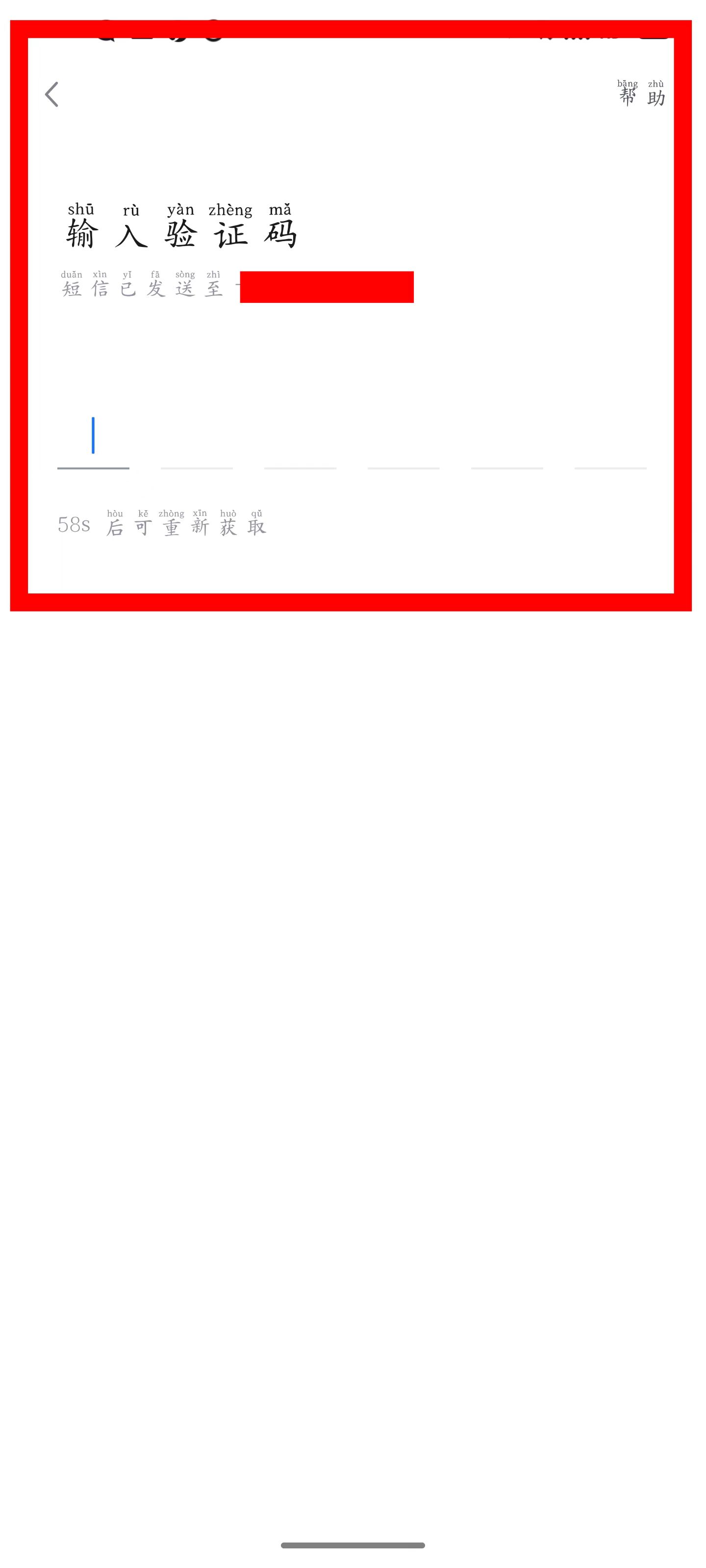 4、在输入验证码页面,输入收到的验证码完成登录。