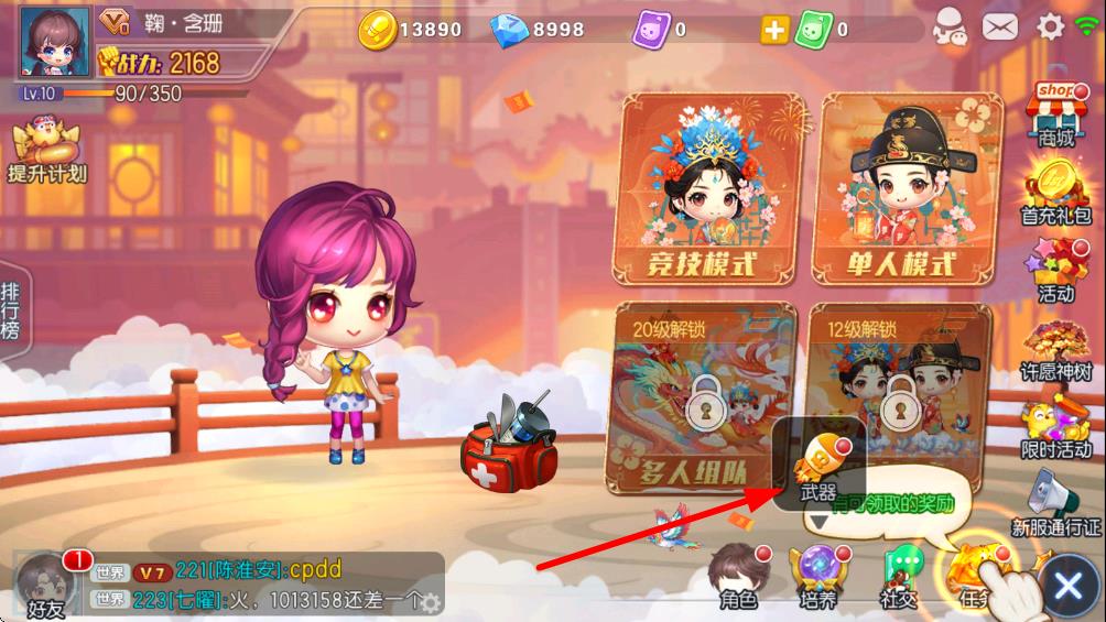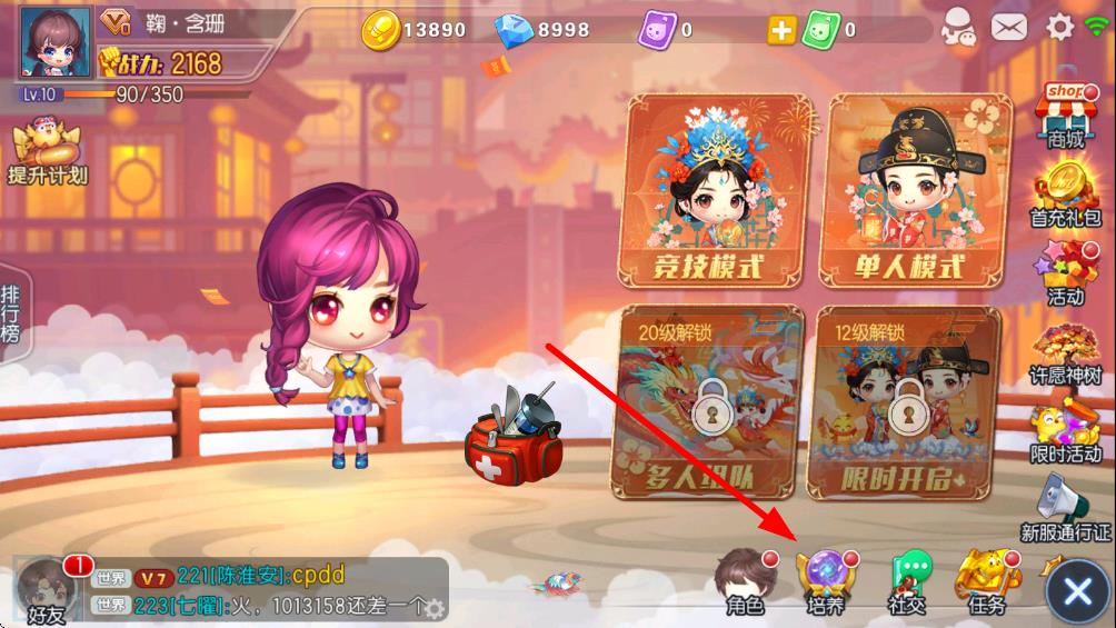 1、打开弹弹堂游戏,进入游戏主界面,点击下方的培养选项。