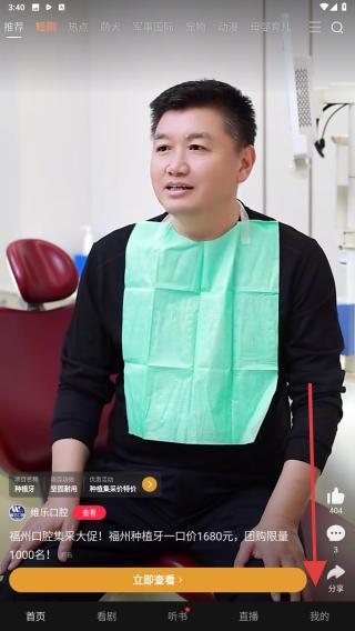 1、打开好看视频APP,在首页右下角点击我的图标。