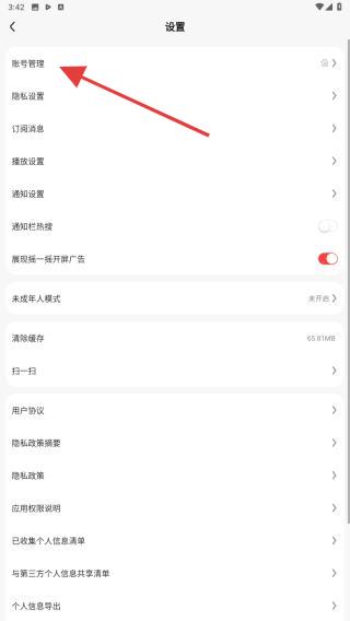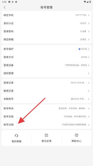 4、在账号管理的界面内,向下滑动找到并点击账号注销的按钮即可。