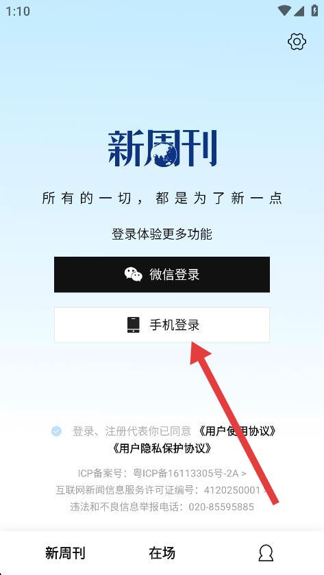 1、打开新周刊,点击底部导航栏中的我的选项。