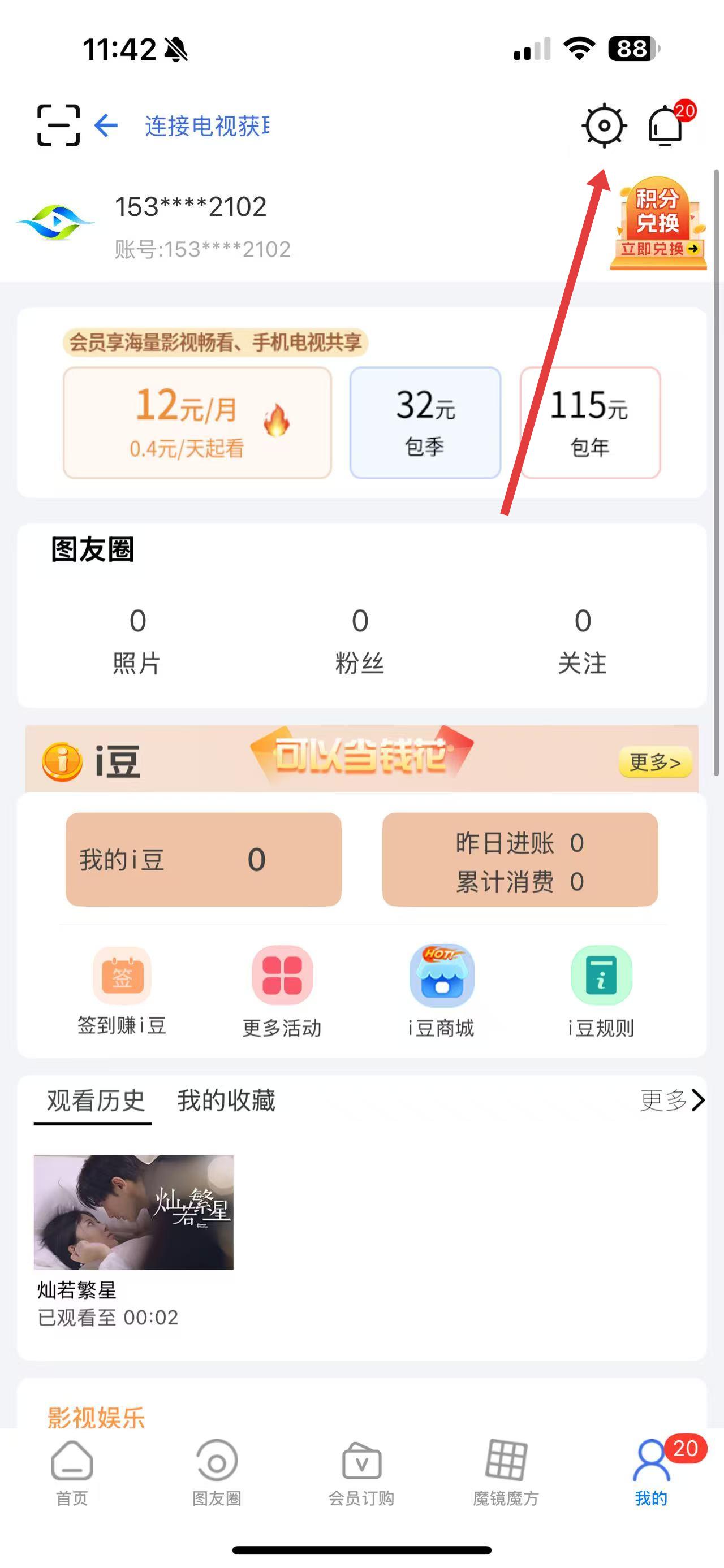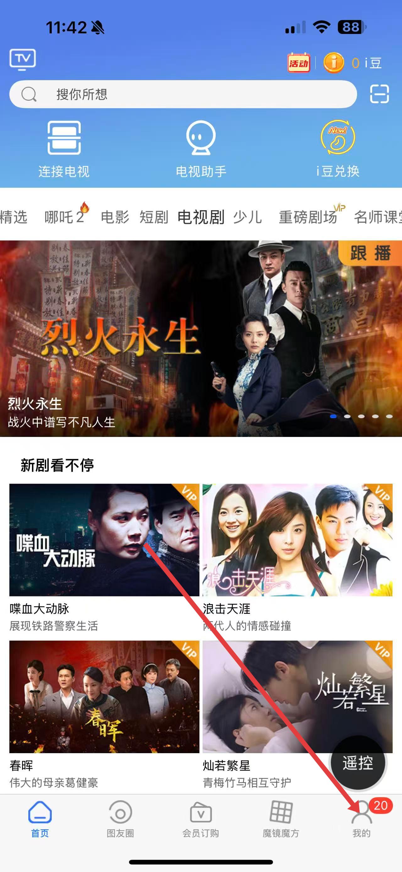 1、打开i视APP,点击底部导航栏最右侧我的,进入个人页面。
