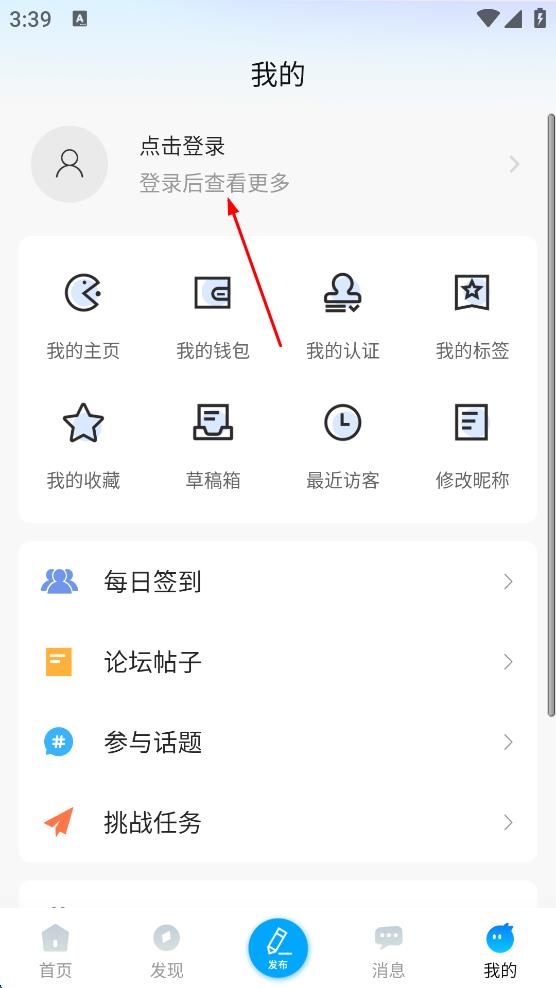 3、在“我的”页面,点击“点击登录”,进入账号密码登录页面,输入用户名/手机号和密码。