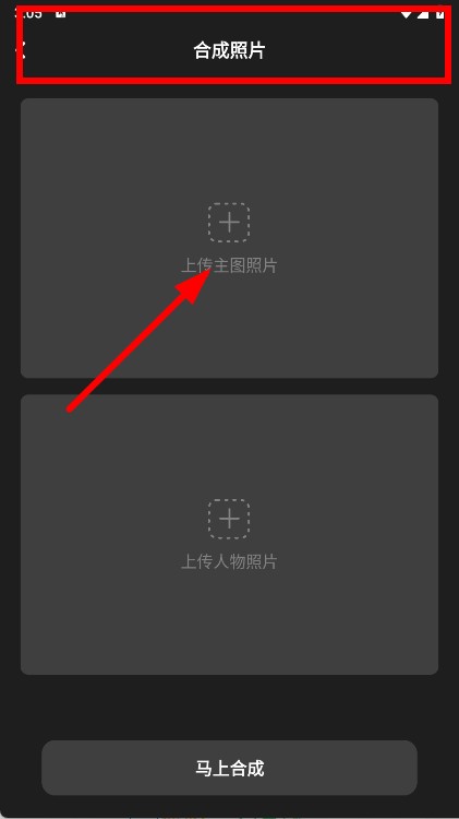 2、在合成照片页面,点击上传主图照片,选择一张背景照片。