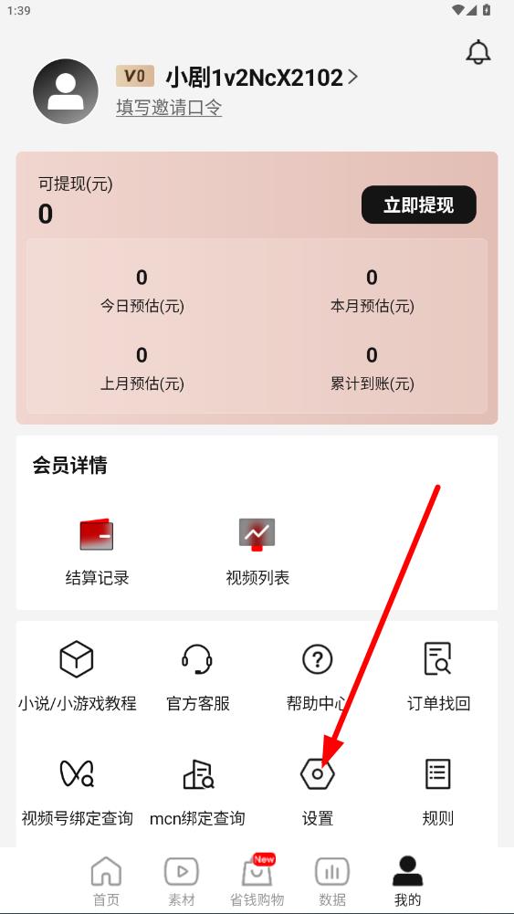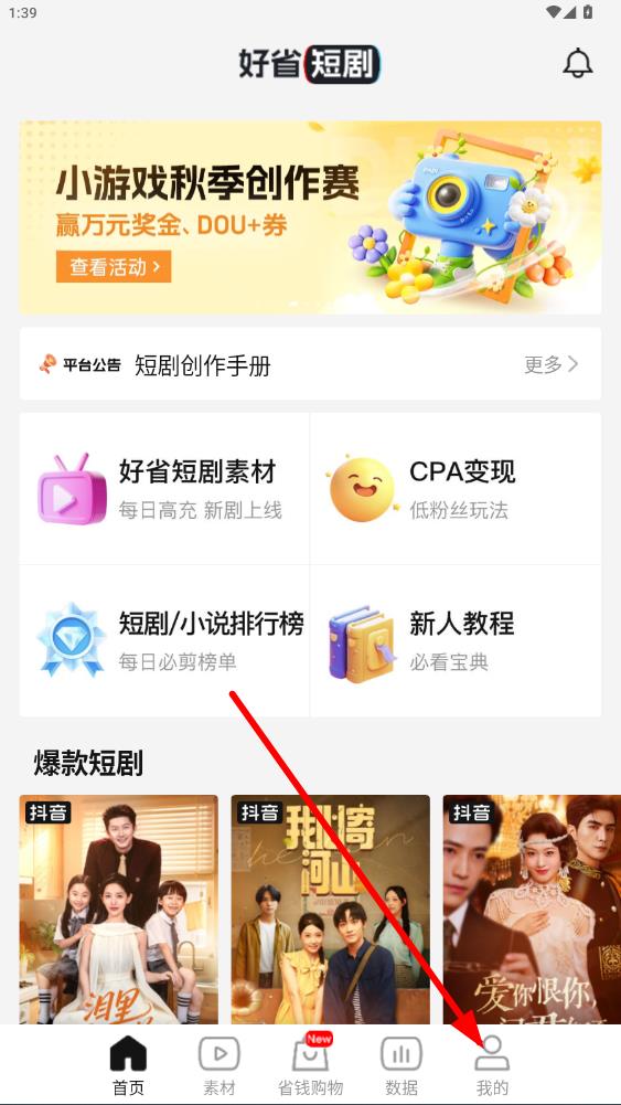 1、打开好省短剧APP,点击底部导航栏最右侧我的选项,进入个人页面。