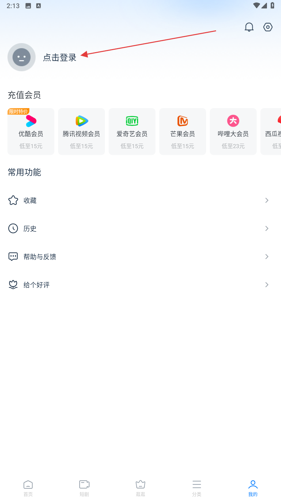 3、在我的页面内,点击登录的功能按钮。
