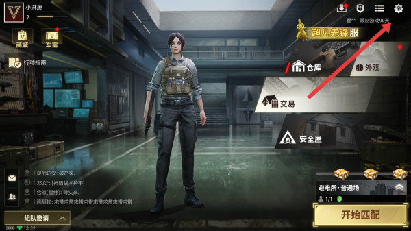 1、打开超凡先锋游戏,进入游戏主界面后,点击右上角的设置图标,进入设置页面。