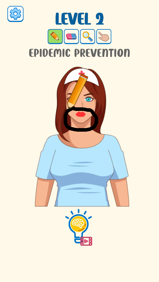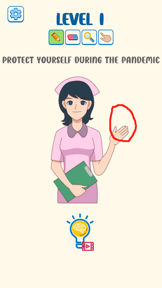 1、关卡中,滑动屏幕,在护士手上画出消毒液。