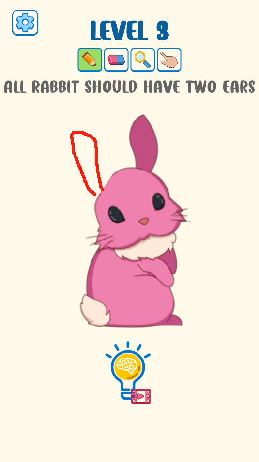 3、兔子缺少一只耳朵,画出另一只相同大小的耳朵即可。