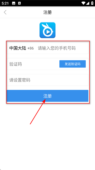 4、输入手机号码、验证码并设置密码后,点击注册,完成注册操作。
