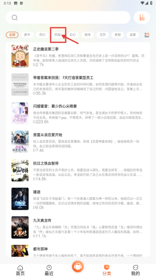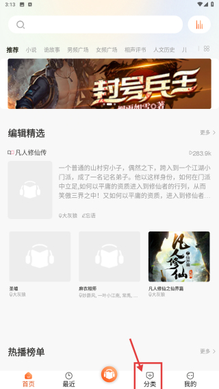 1、打开有声读物类应用,点击底部分类选项,进入分类页面。