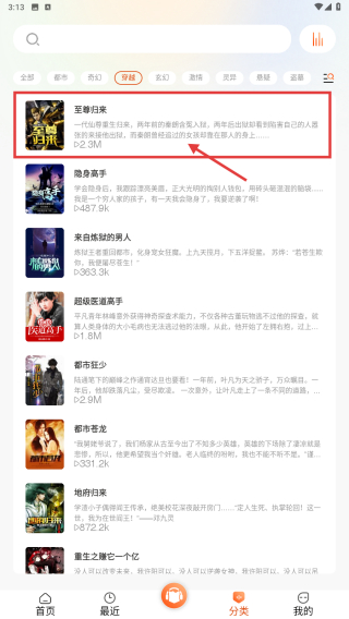 3、在玄幻内容列表中,找到至尊归来条目,点击进入详情页。