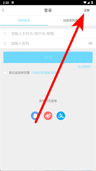 1、打开寻医问药,在温馨提示页面点击我同意。