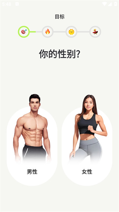 1、进入到软件之后可以根据自己个人的情况进行选择,选择完成之后就会推荐适合的方案。