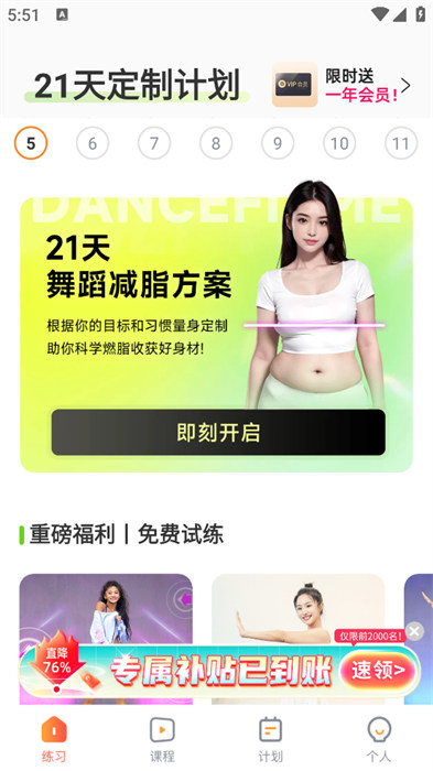 2、在软件的首页可以看到各种各样的舞蹈课程和自己的舞蹈方案。