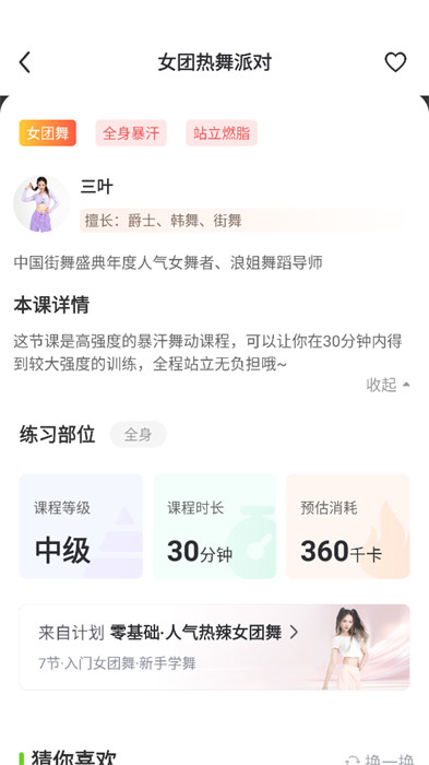 热汗舞蹈app是一款将舞蹈教学与健身塑形深度融合的沉浸式平台,让用户足不出户就能跟随专业教练热舞燃脂,轻松告别传统健身的枯燥感,平台汇聚尊巴、街舞、有氧操等20余种热门舞种,课程按零基础、中级、高级分层设计,搭配多角度特写与慢放解析,复杂舞步也能轻松掌握。