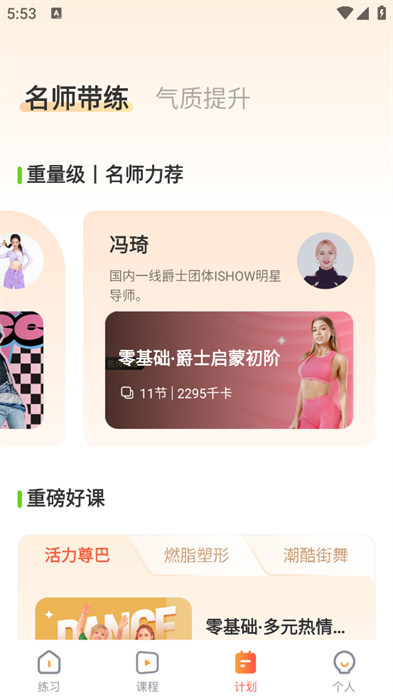 5、更多专业的名师可以选择进行带练,会更加的有运动的动力。