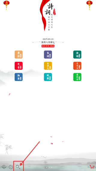 1、打开诗词类应用,点击左下角搜索图标,进入搜索页面。