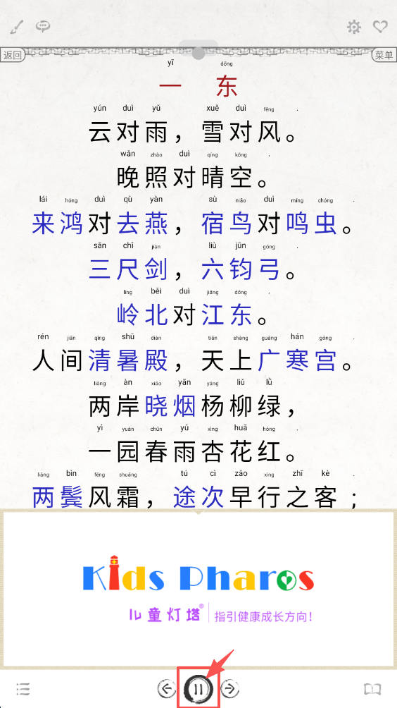 4、在诗词详情页,点击暂停按钮,停止诗词内容的播放。