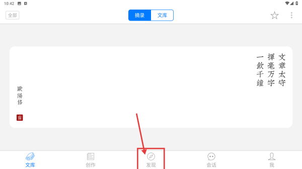 1、打开文学类APP,点击底部发现选项,进入发现板块页面。