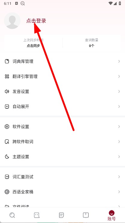 2、在账号页面,点击点击登录。