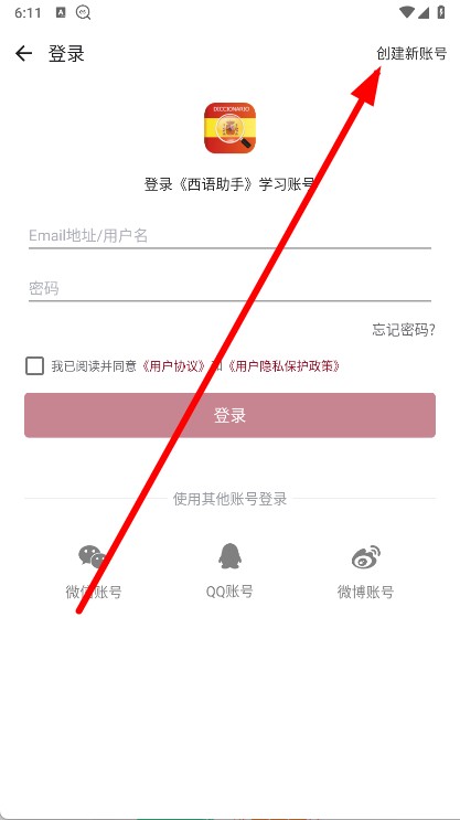 3、进入登录页面后,点击创建新账号。